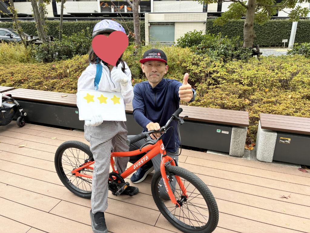 はじめはペダルに足をのせることも難しかったようですが、サポートなしで乗れるようになり、その後はブレーキの練習、蹴り出しの練習なども行うことができ、しっかりと乗れるようになりました。