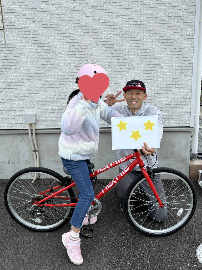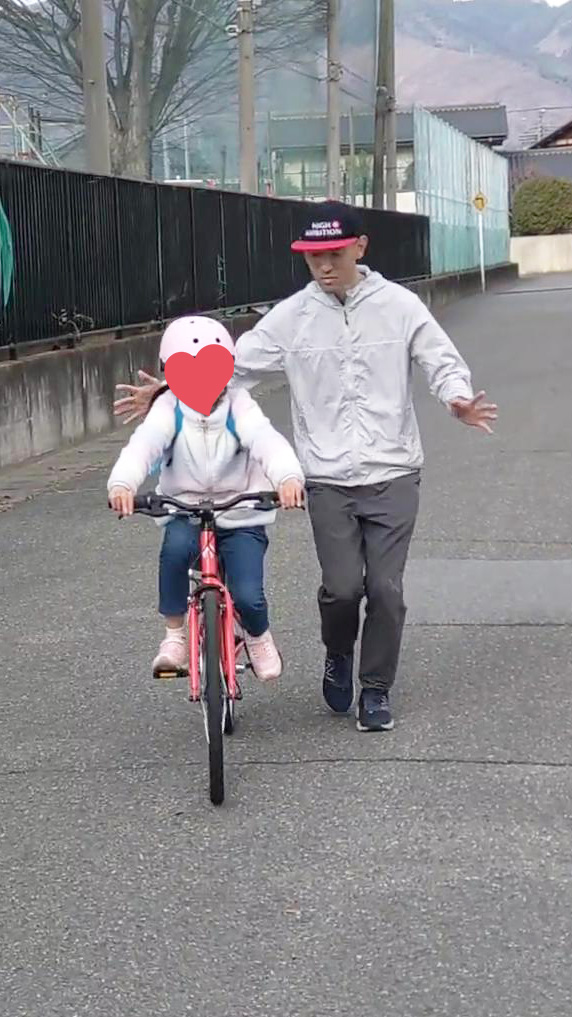 運動がちょっと苦手と伺っていましたが、サポートなしで乗れるようになり、その後はブレーキの練習、蹴り出しの練習なども行うことができました。
