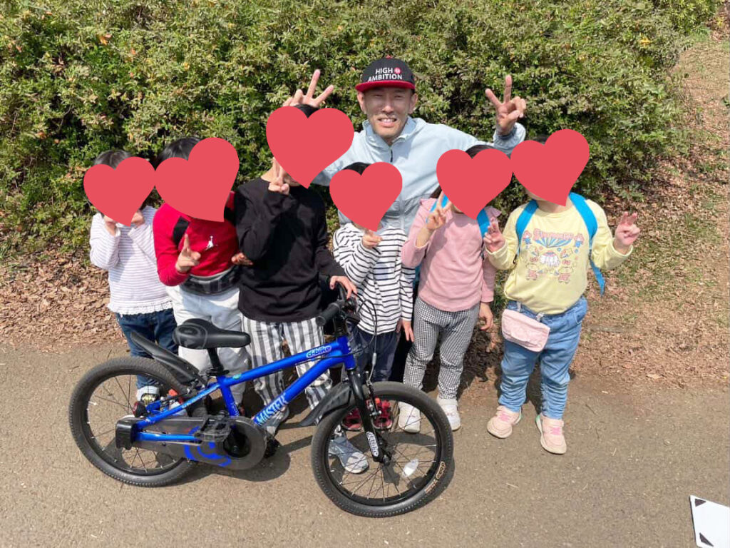 はじめはペダルを回すことも難しかったようですが、サポートなしで乗れるようになった子もおり、その後はブレーキの練習、蹴り出しの練習なども行うことができました。