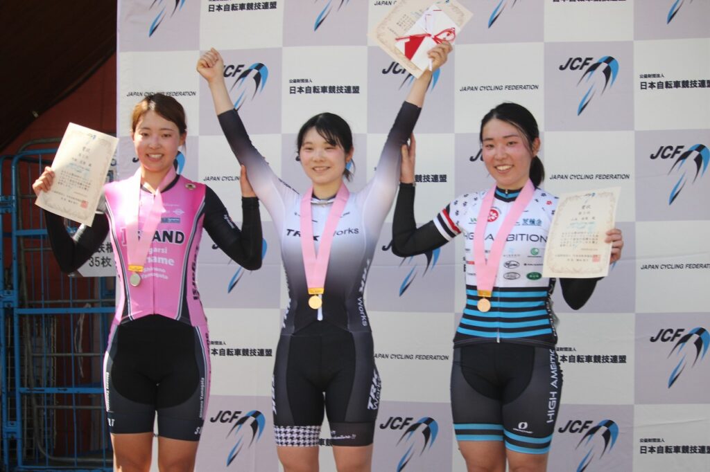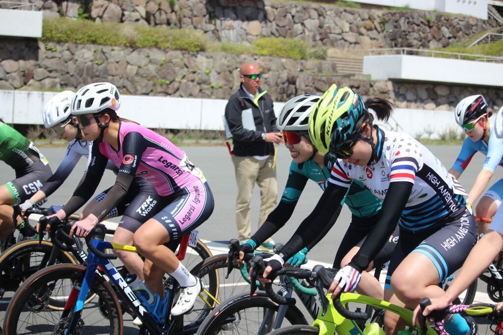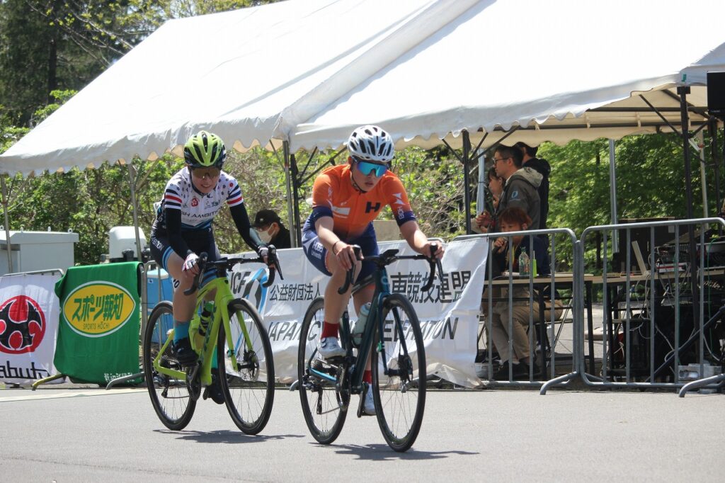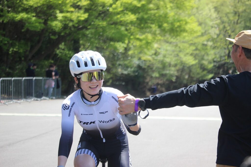 昨日のジュニアに続き、今日は女子エリート+U23のレースが開催されました。High Ambitionレーシングアカデミーの山本 侑果選手、U23では岡本 彩那選手(今回はブラウブリッツェンでエントリー)が出場し、女子エリートで山本選手が3位入賞、6月の全日本選手権ロードレースの出場権を獲得しました。